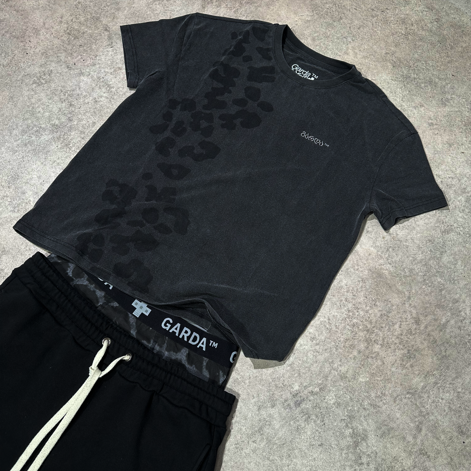 - Washed cheetah print Garda + on the back